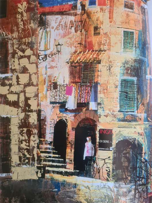 WHAT TO BRING: ● Photos and sketches for inspiration. Gail suggests sticking to buildings as a theme - holiday snaps will be ideal. Acrylic is the best paint to use. Acrylic inks, particularly in black and white help to establish the drawing phase of the picture. Mixed media is good for the upper layers to give detail. Oil pastels, posca pens, or other dry media would adhere to acrylic paint. ● Collage materials ● Canvas board, MDF or plywood as a base, something able to take the layers. ● Kitchen towel, knives, brushes and any tools to make interesting marks. ● A plastic cover for your table and chair and your lunch.